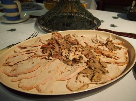 Next up was the three bird roast. This was a duck inside a pheasant inside a turkey. Garnished with streaky bacon and completed with stuffing and delicious gravy. All the components of a spectacular Christmas dinner. The flavours of the three birds worked really well together and cooking it in the beautiful cast iron ovens of the AGA meant no moisture was lost in the roasting process.