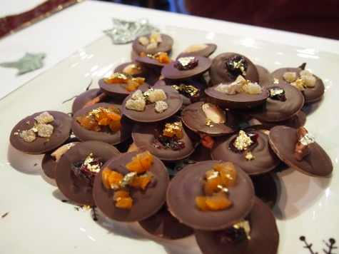 Alison had also done an alternative take on Christmas pudding with a Christmas parfait and served with light golden biscuits. The final dish was some rich chocolate treats. These little droplets had been handcrafted by Claire and included edible gold leaf decoration. A delicious way to round off a substantial Christmas dinner.