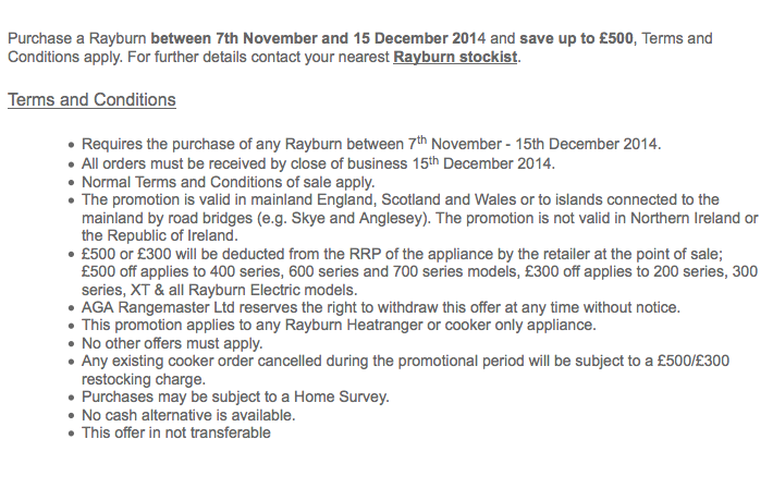 - Requires the purchase of any Rayburn between 7thNovember – 15th December 2014.