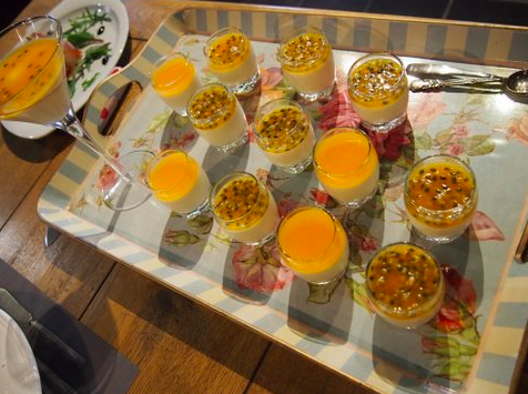 Alison’s pudding was a more delicate affair. A cross between a syllabub and a posset, served in a martini glass and topped with a passion fruit jelly. It gave a lovely contract to the sharpness of the fruit with the softness of the posset. The general consensus was of some delicious recipes that were very ‘do able’. Ideal for Easter entertaining.