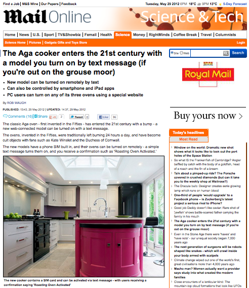 The Aga cooker enters the 21st century with a model you turn on by text message (if you’re out on the grouse moor) by Country Warmth Malton | May 29, 2012 | News & events Check out the article on today’s Mail Online about the AGA Total Control! www.dailymail.co.uk