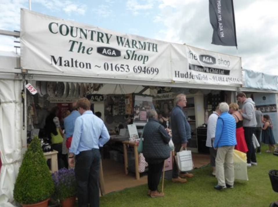 We had a live 3 Oven Dual Control electric AGA working on the stand. This cooked bacon rolls for our breakfast, pies and toasted sandwiches for our lunch, delicious lemon drizzle cake for afternoon tea and gently simmered a chilli con carne for our dinner. All done in the middle tent, in a field in Yorkshire!